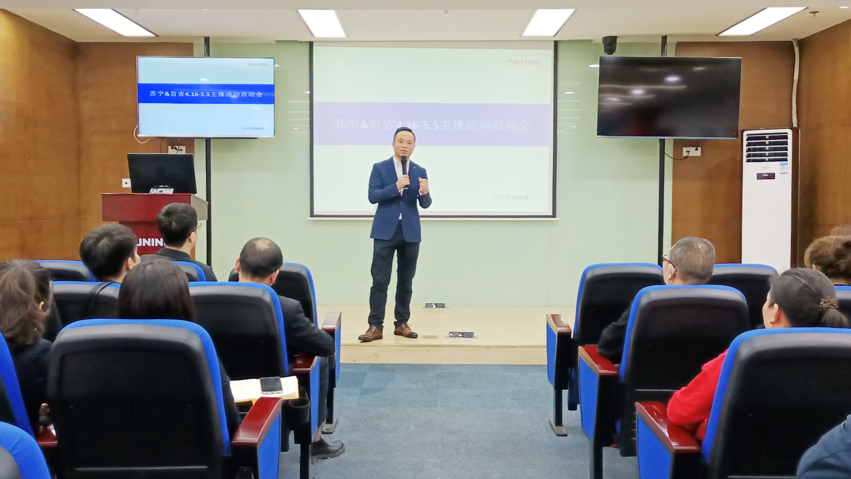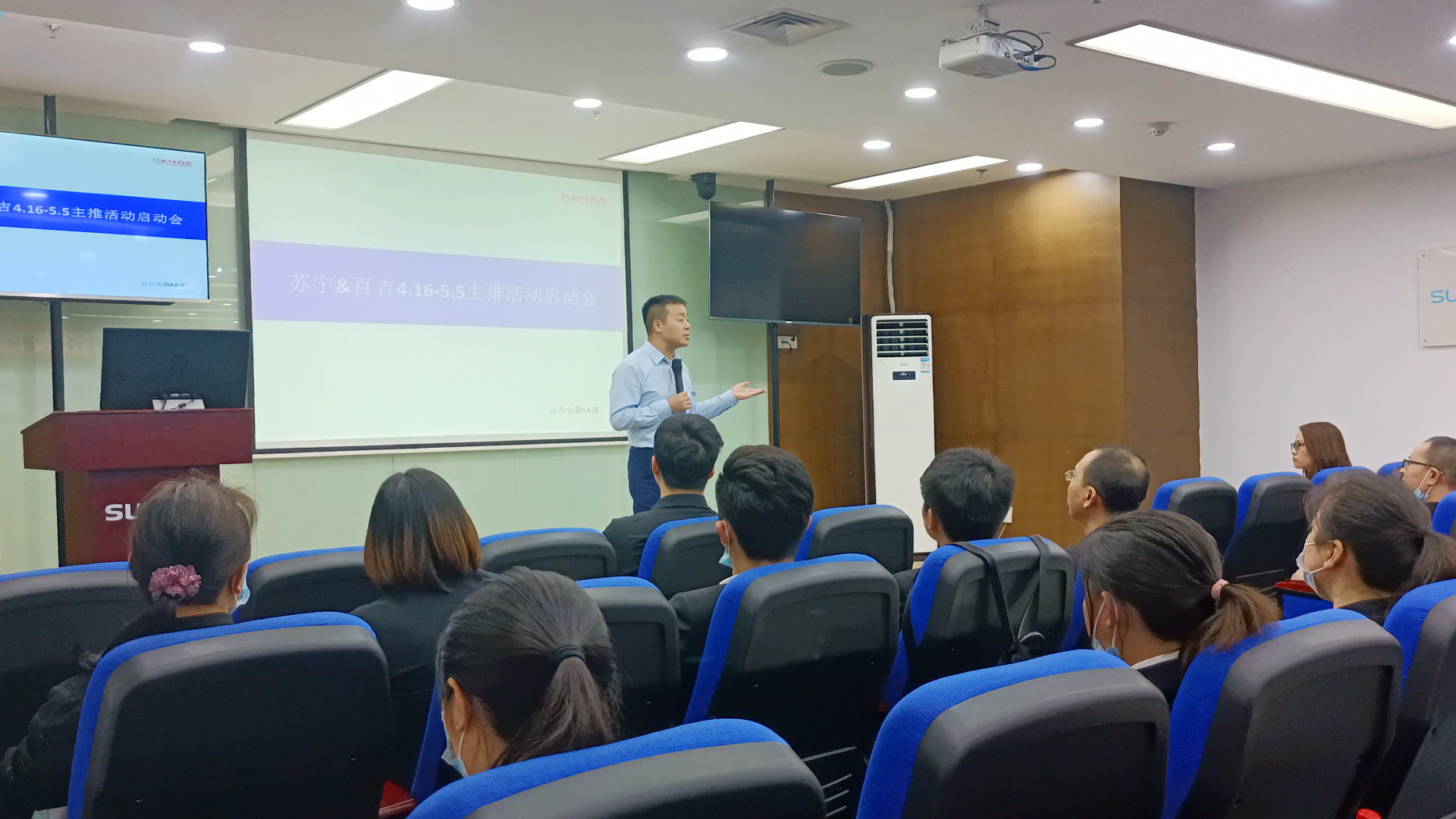蘇寧&百吉4.16-5.5主推活動啟動會在解放碑蘇寧易購營銷中心召開。蘇寧重慶大區(qū)總經(jīng)理-劉其志,重慶蘇寧廚衛(wèi)經(jīng)營部采銷總監(jiān)-郭騏菘,重慶百吉廚電副總經(jīng)理-童強,重慶百吉廚電KA銷售總監(jiān)-鄧躍參與了此次會議并發(fā)表講話,同時參會的還有蘇寧易購銷售督導(dǎo)以及百吉廚電銷售。會議重點講解蘇寧&百吉聯(lián)合主推活動任務(wù),為迎接即將到來的五一小長假,百吉特推出大型促銷活動,此次會議明確了兩方銷售任務(wù),同時為蘇寧和百吉形成密切的合作關(guān)系發(fā)展定調(diào)。